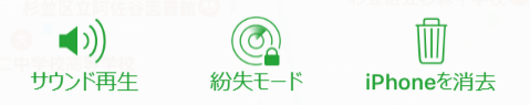 特定できると、iPhoneの場所がマップに表示されるので、該当のiPhoneをクリックします。するとiPhoneの名称と合わせて、以下のアイコンが表示されるので、ここで「iPhoneの消去」を選択します。これでiPhoneの初期化は完了です。