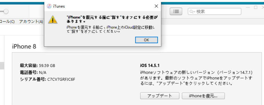 iTunesを使ってiPhoneをアップデートすることによって解決することもできます。手順は以下の通りです。