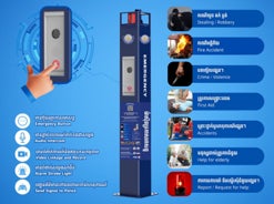 フォーバルカンボジアは、地域の安全性向上を目的とした「非常警報ボタンシステム(Public Emergency Button) 」 を提案し、機械警備サービスを提供する合弁会社E SECURITY SERVICESと連携して、シェムリアップ州警察との協力体制の構築および研修を実施し同システムを導入しました。本システムは、繁華街付近に設置されたテレビ通話機能付きの非常警報タワーを活用し、緊急時に市民と警察を即時につなぐ役割を担います。非常警報ボタンシステムの設置により市民の安全・安心の確保に加え、世界遺産を擁する観光都市として、スマートシティ化を推進する重要な施策となっております。