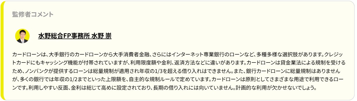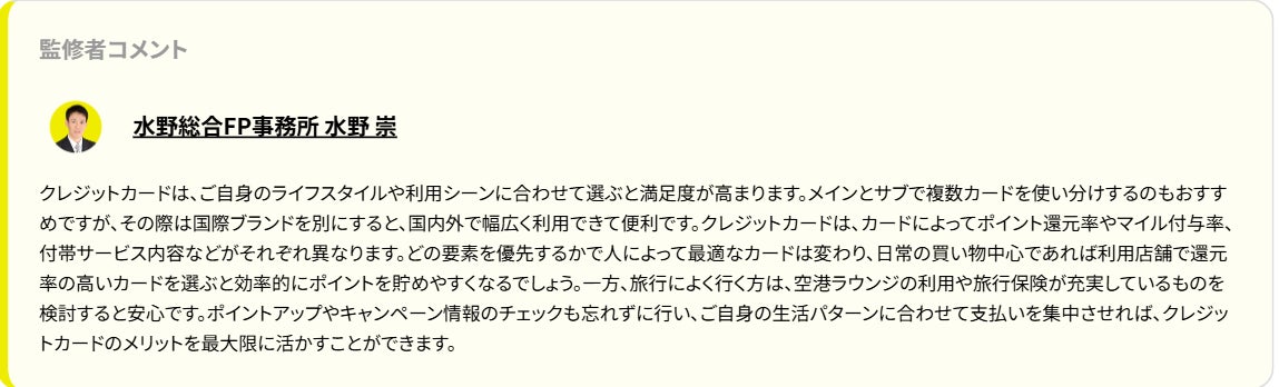 クレジットカードカテゴリとカードローンカテゴリの記事内に監修者コメントを設置しました。