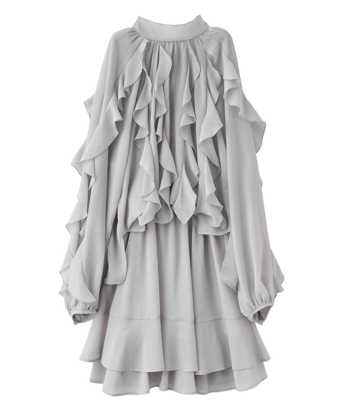 上下別々に着ることができるのが最大のポイント。フリルブラウスとしてデニム合わせにも、スカート部分はスウェットなどの合わせにもオススメです。