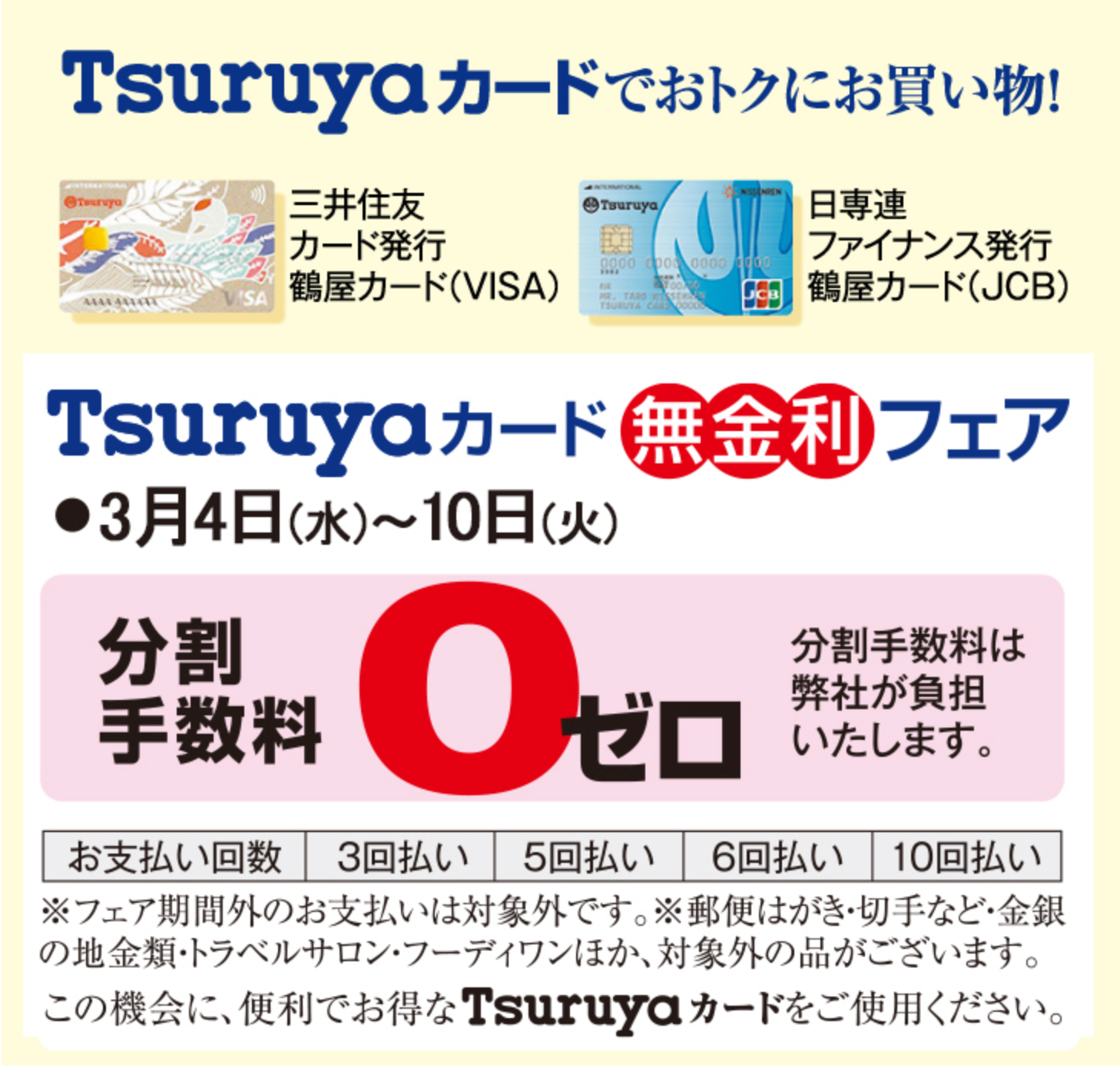 ■ Tsuruya カード分割払い無金利フェア ~3月10日(火)まで