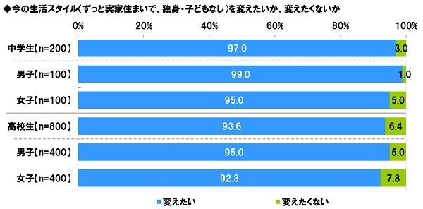 ◆「将来もずっと実家住まいで、独身・子どもなしのままがいい」女子高校生では8%