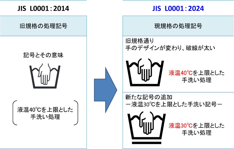 液温30℃の手洗い試験で問題のない製品に対して、新たな記号を追加しました。