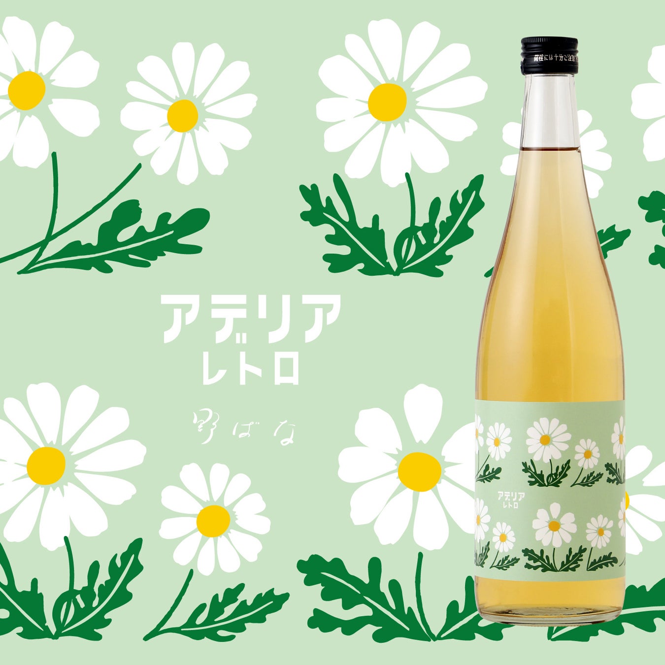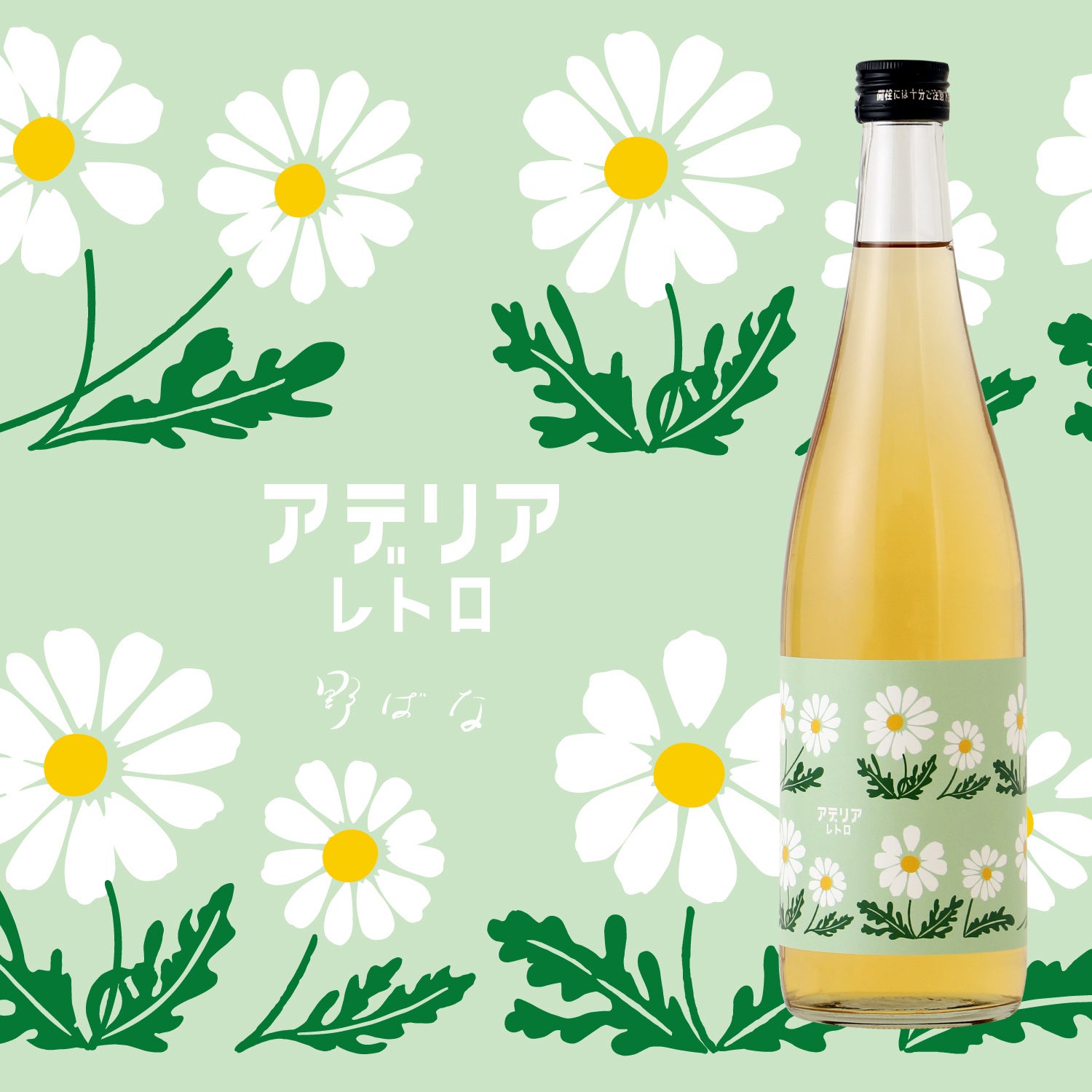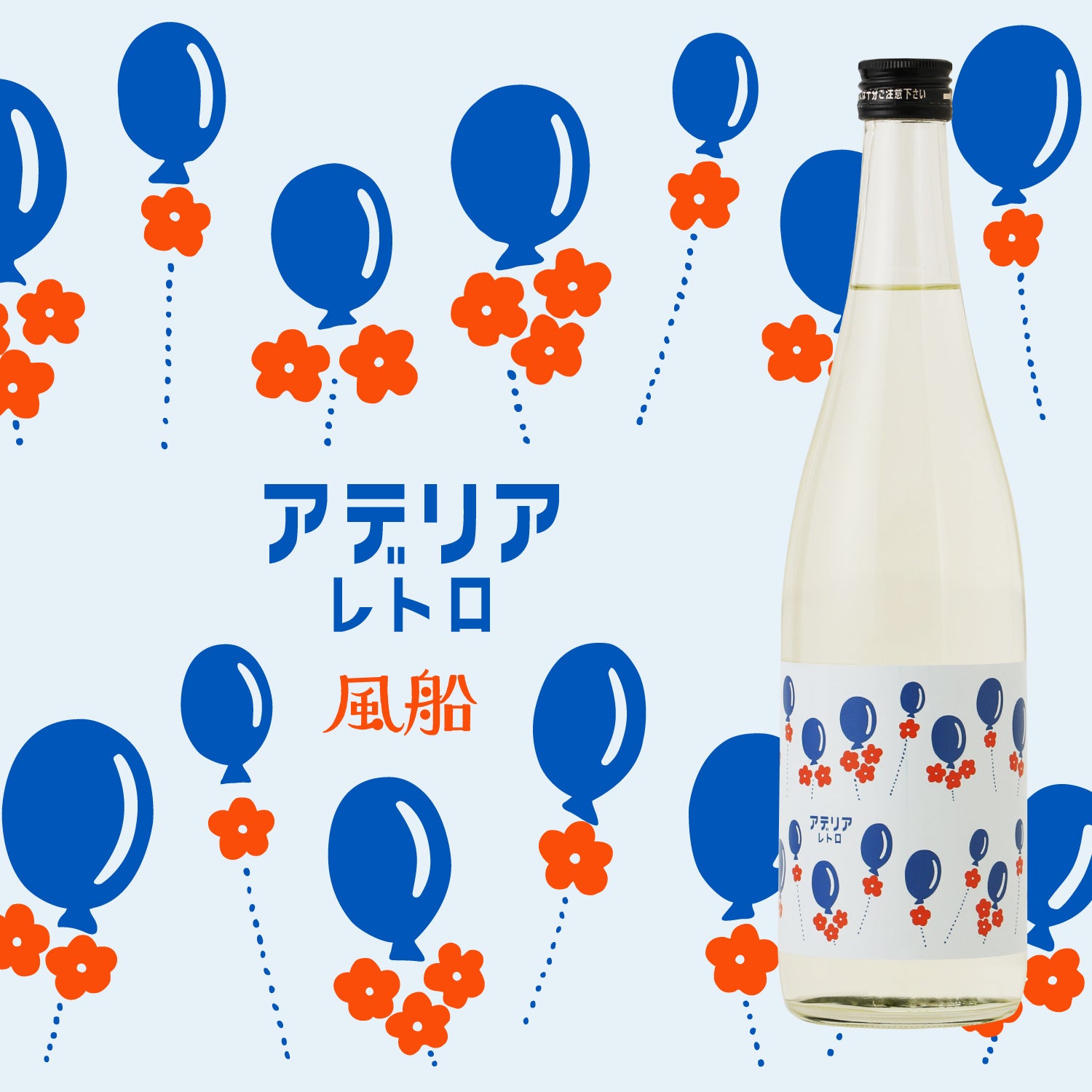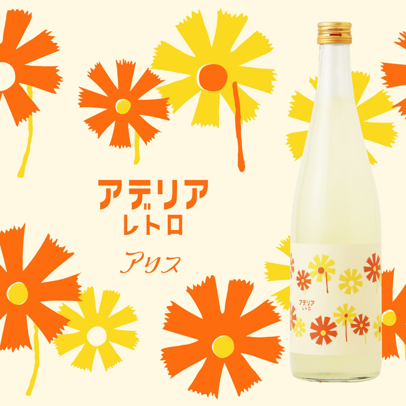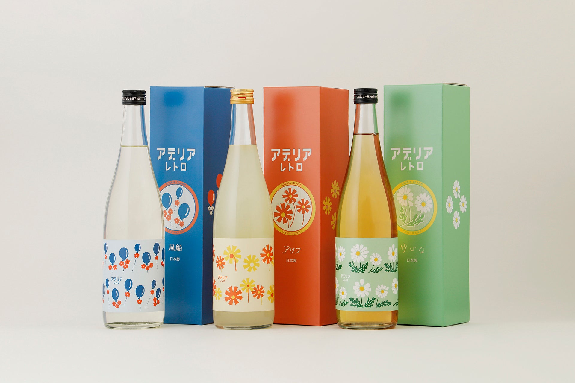 今回はそんな「アデリアレトロ」でも特に人気な「風船」「アリス」「野ばな」の3柄をラベルにデザインしたオリジナルラベル酒を販売します。お酒の種類は、日本酒にはやわらかなタッチで描かれた「風船」のデザインを、果実酒にはオレンジと黄色のポップな色使いが印象的な「アリス」のデザインを、梅酒には清楚でかわいらしい「野ばな」のデザインをあしらいました。
