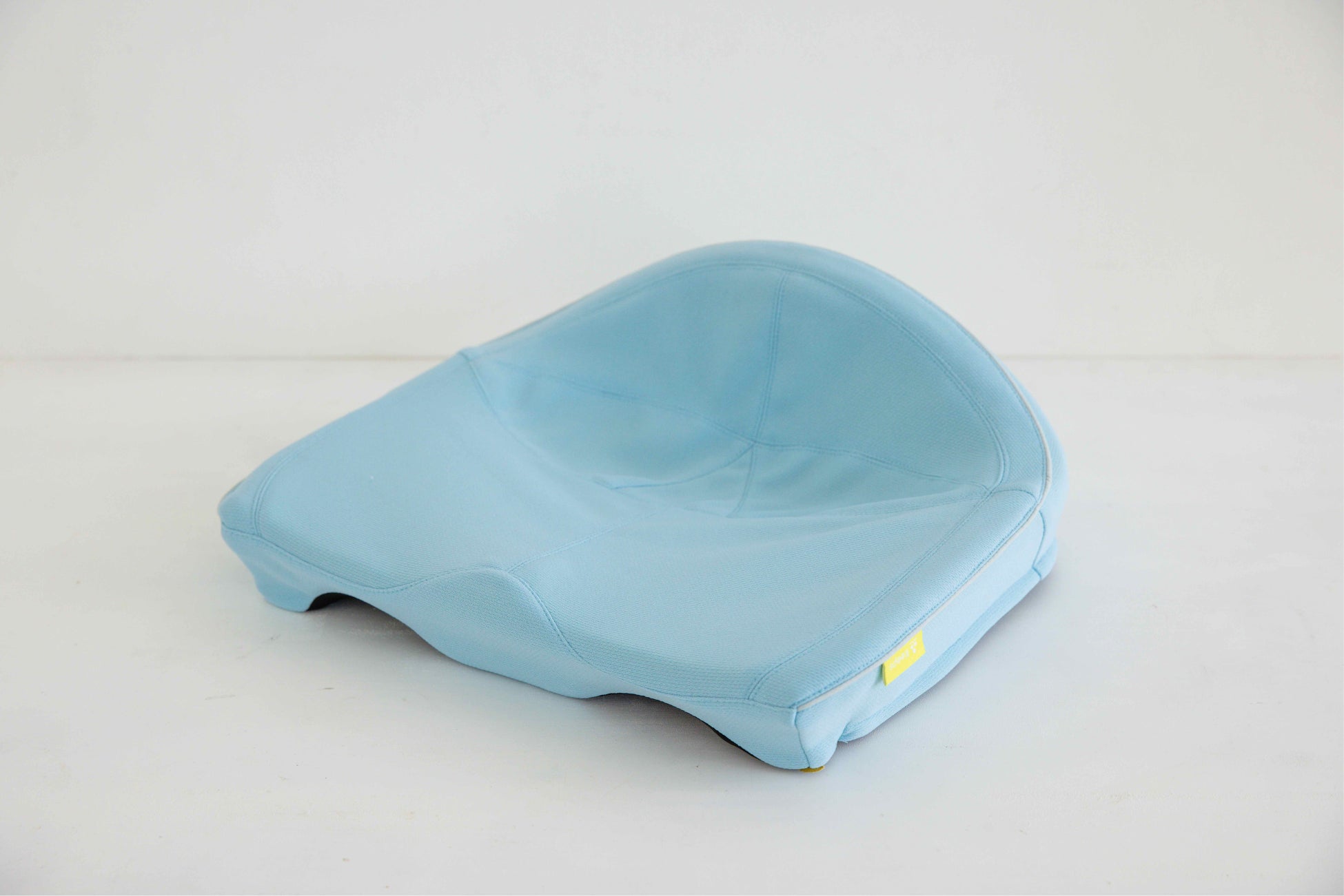 大人用“お尻のまくら”の機能はそのままに、子どもの体格に合わせたサイズ感で、やわらかなウレタンを使用。対象の目安は、5〜12歳で身長110cm〜150cm、体重15〜45kg程度のお子様向けに設計しています。