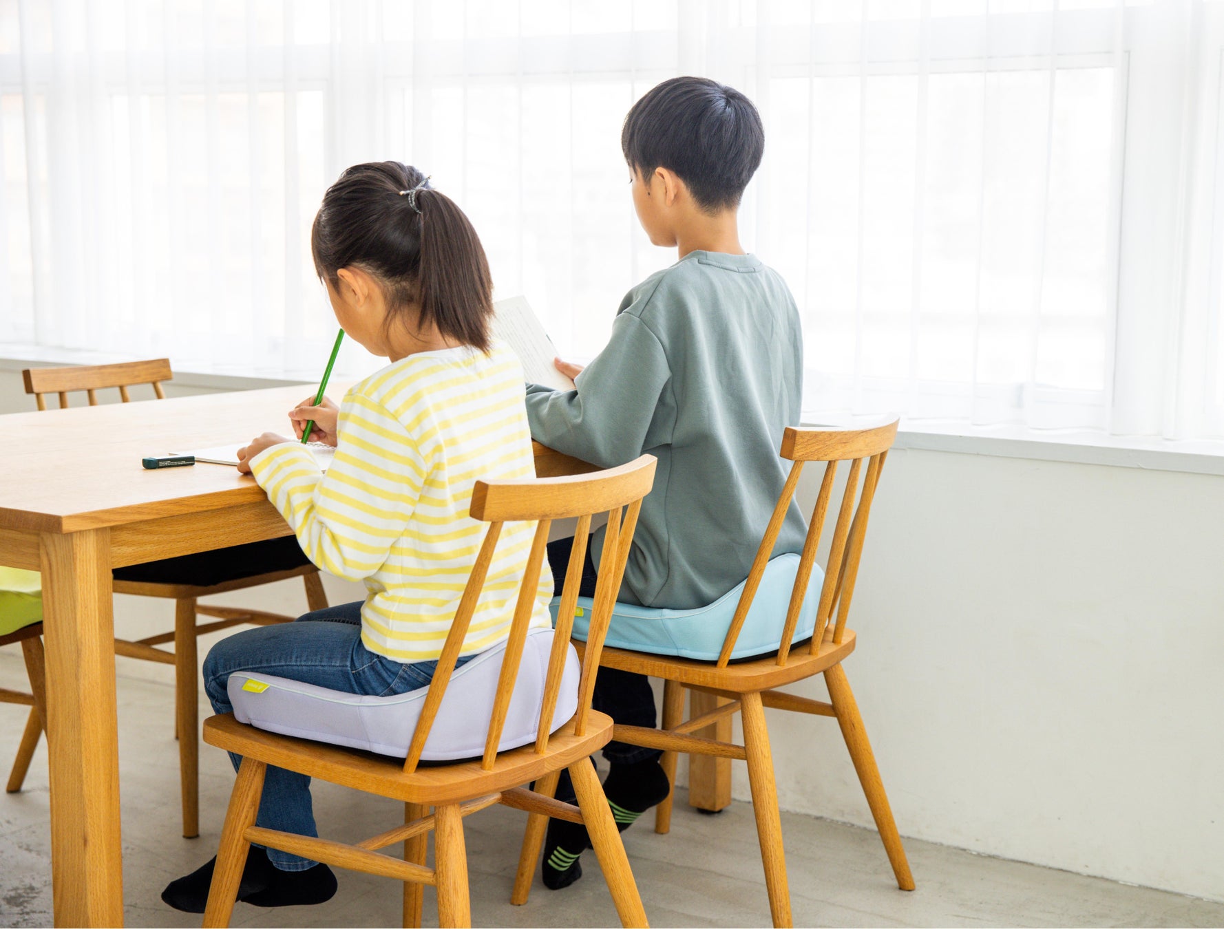 子どもの姿勢改善に!いつもの椅子に置くだけで、勉強中も食事中も姿勢が伸びて、夢中がつづく