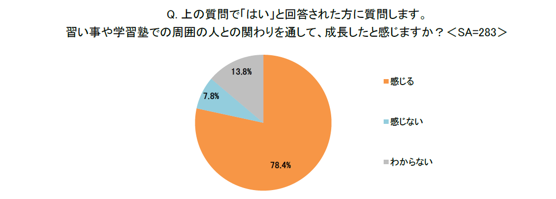1.約8割の親が子どもに習い事などの学校外活動を経験させ、「成長を感じる」と回答!