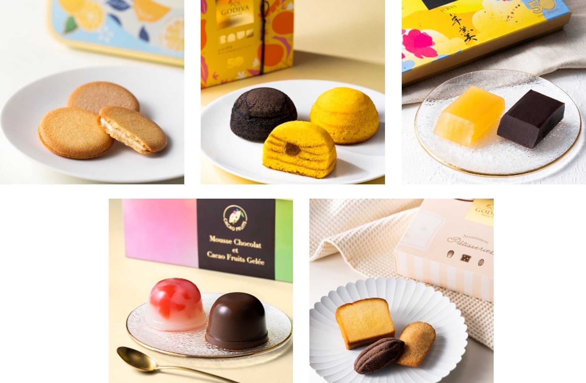 ゴディバの夏季限定「サマーコレクション」は、日本上陸50周年の感謝の想いを込めた、GODIVAと伝統の和菓子のコラボレーションとして誕生した羊羹や日本の素材を使用した焼き菓子、カカオをフルーツとして楽しむことができる、これからの時期にぴったりのつめたいデザートなど全5種をラインナップしました。