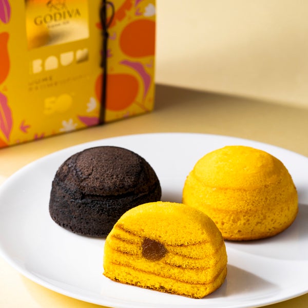 ベルギー産のチョコレートと発酵バターを練りこみしっとり焼き上げたキュートなドーム型バームクーヘン。ショコラと限定品の宮崎 マンゴーをアソート。