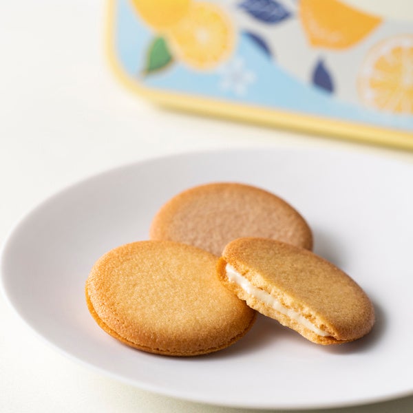 瀬戸内レモンのパウダーを練りこんださわやかで甘酸っぱいホワイトチョコレートを、国産はちみつを加えたやさしい甘みのラングドシャ生地でサンド。