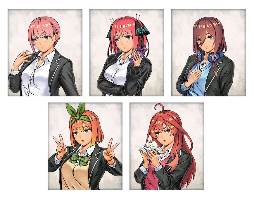 ゲームをプレイしてスタンプを集めると「中野一花」「中野二乃」「中野三玖」「中野四葉」「中野五月」をモチーフにしたアイテムを獲得することができます。