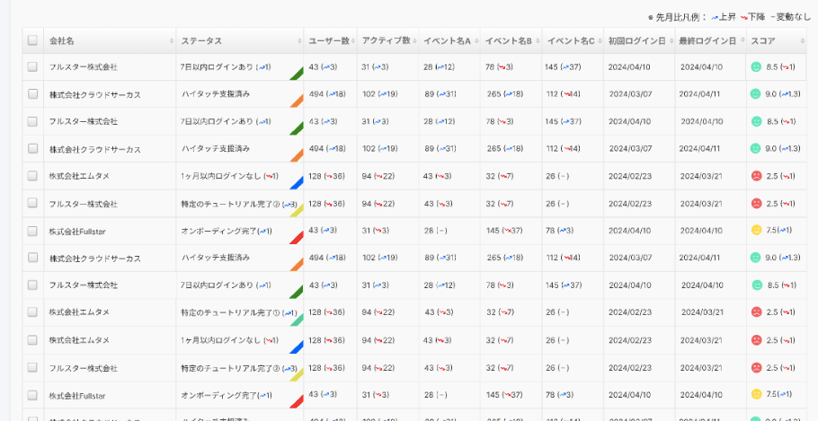 これらの新機能を追加したことにより、導入企業は、これまでは自ら解約の可能性がある顧客を探す必要がありましたが、ダッシュボード上でお客様のご利用状況が一目でわかるようになったため、CSのアプローチ活動における生産性の向上を図ることができるようになります。