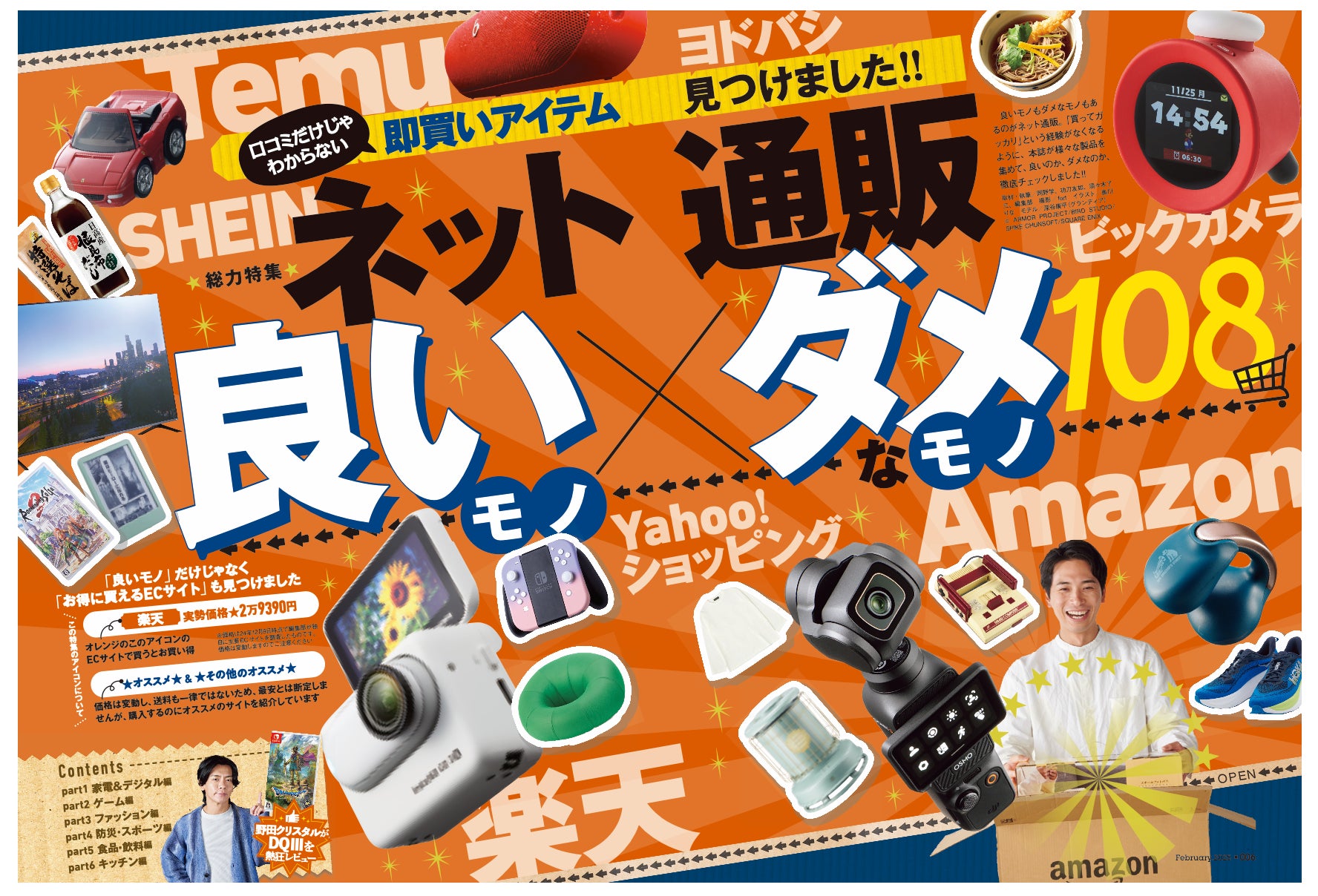 2月号はポチッとする前にチェックしたい「ネット通販 買って良いもの×悪いもの108」を総力特集! 楽天・AmazonからTemuまで徹底リサーチし、即買いアイテムを見つけました。さらに「防犯グッズ」や「ゆるっと休めるほぐしグッズ」なども検証。野田クリスタルさんの激ハマりゲームトーク、滝音&家族チャーハンのM-1出場コンビ直撃取材、蛙亭イワクラさんの家電トークも見逃せない! 2月号も暮らしをアップデートする情報を厳選してお届けします。