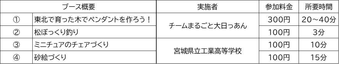 柳町の有志の集まり「チームまるごと大日っあん」と宮城県立工業高等学校の学生チームによる、ものづくりワークショップを実施します。松ぼっくり釣りでは、松ぼっくりに紐づけられたカードを地図に貼り付けて、「大日の杜周辺の街路樹マップ」を作成できます。