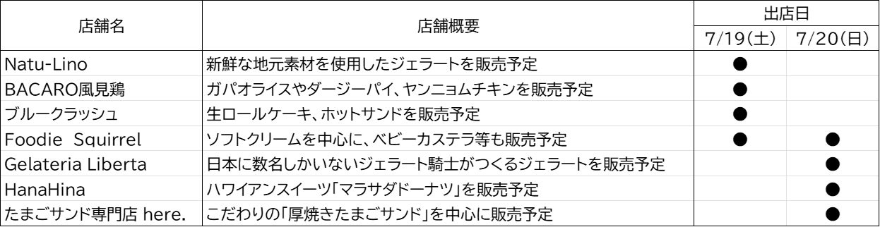 午前11時から午後9時まで、各日4店舗のキッチンカーが来場予定です。