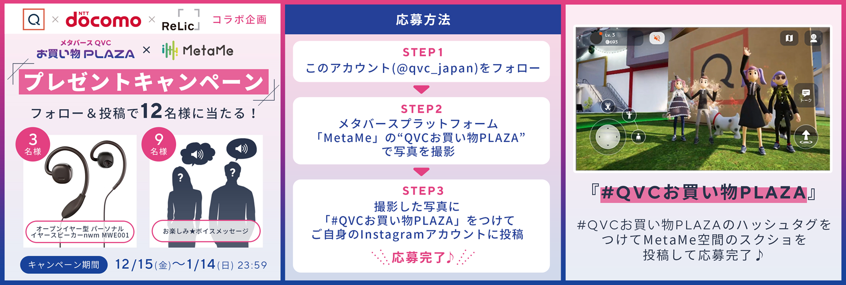 QVC 、NTTドコモ、Relicは、最新技術の導入で新しい顧客体験を創造する「メタバースQVCお買い物PLAZA」をMetaMe®上で期間限定公開へ
