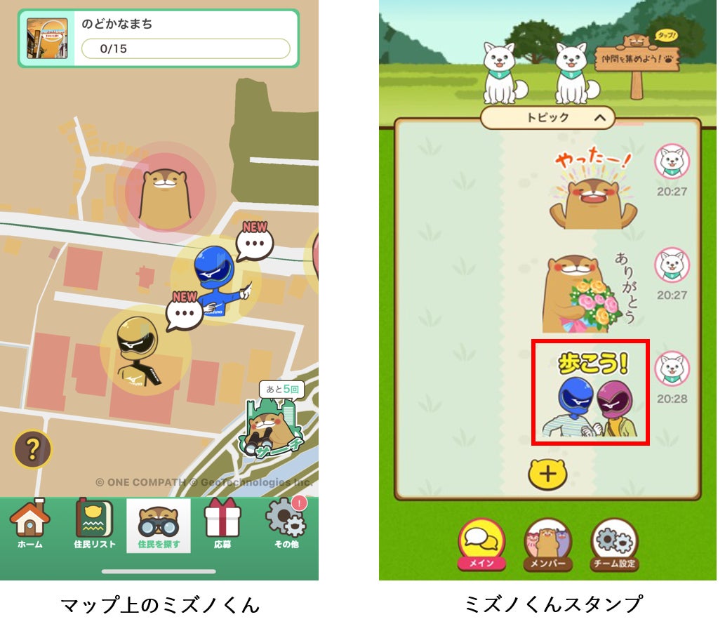 2016年11月より、株式会社ONE COMPATH(当時、株式会社マピオン)が運営している、「歩くことが楽しくなる」仕掛けが満載のウォーキングアプリです。アプリ内に登場する様々な住民キャラクターに話しかけると依頼が出され、クリアすると、地域名産品などが当たるプレゼントキャンペーンに応募できます。健康増進施策を進める自治体や企業、家族や友人同士などチームでの参加も可能です。