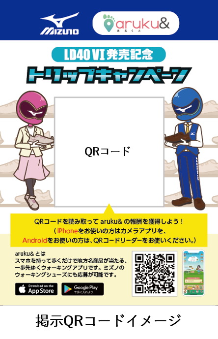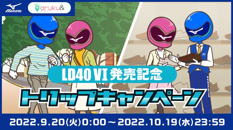このたびミズノが発売した「LD40Ⅵ」は、長距離歩行での身体への負担を軽減するソール機能を搭載したウォーキングシューズで、50代後半〜60代のアクティブシニアが主なターゲットです。今回、aruku&のメインユーザー層と、「LD40Ⅵ」のターゲットが一致したことから本キャンペーンの実施にいたりました。おでかけや旅行(トリップ)などいつもよりも長い距離を歩くシーズンにキャンペーンをお楽しみ下さい。