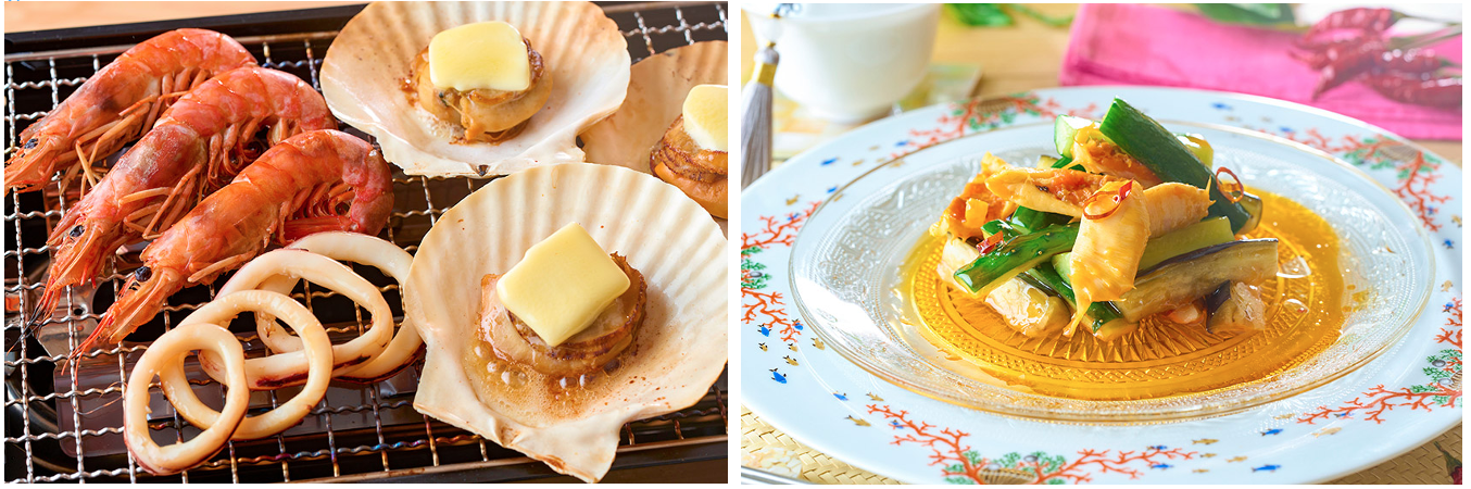 各宿の料理長が腕によりをかけ、食欲の落ちる夏にも美味しく召し上がっていただけるさっぱりメニューから、夏のエネルギーチャージにぴったりのメニューまで、幅広いラインナップでおもてなしする「夏のまんぞくバイキング」をご紹介いたします。