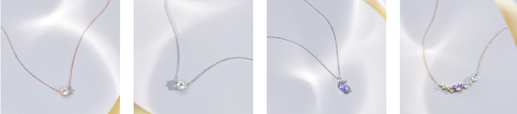 K10YG Necklace / Tanzanite / Amethyst / Topaz ¥35,200 K18PG Necklace / Diamond ¥49,500