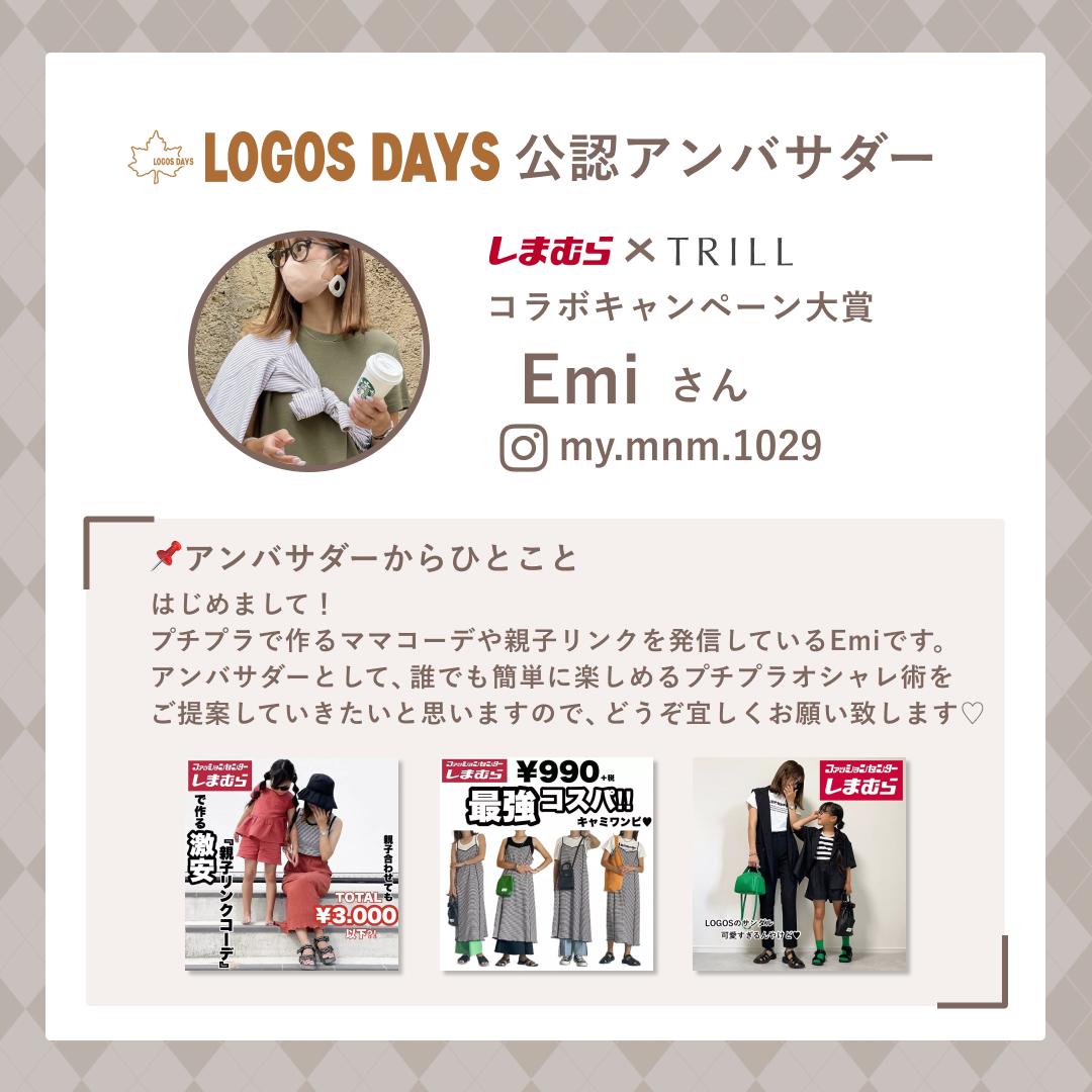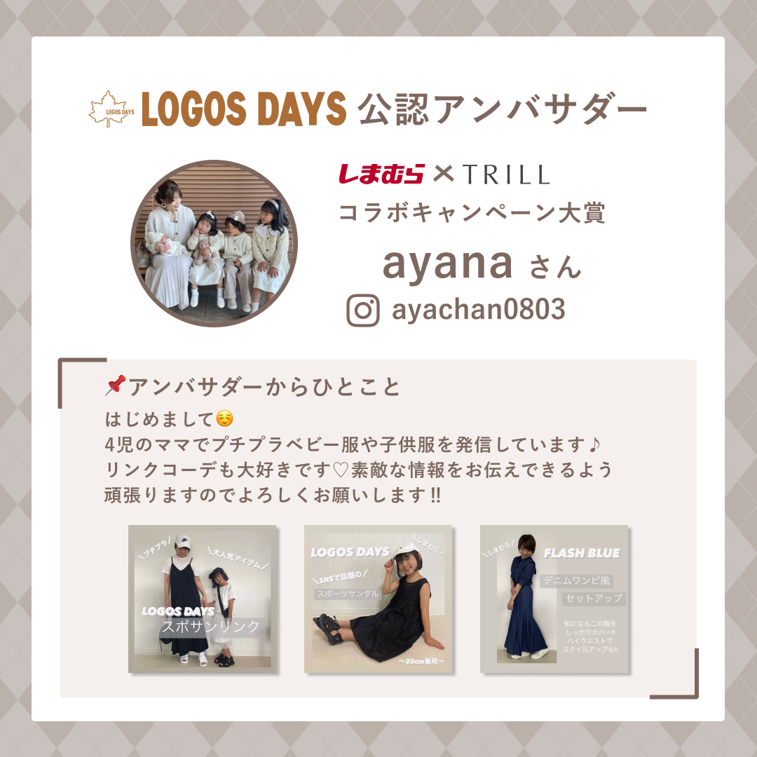 投稿総数1,500件の中から選ばれた、しまむらとLOGOSの共同開発ブランド「LOGOS DAYS」初の公認アンバサダーをご紹介します。(五十音順)
