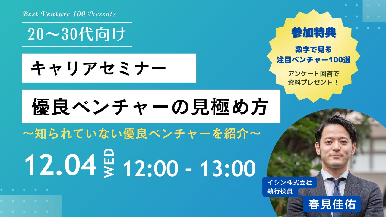 【10名限定!残席わずか】12/04 キャリアセミナー「優良ベンチャーの見極め方」Produced by Best Venture 100