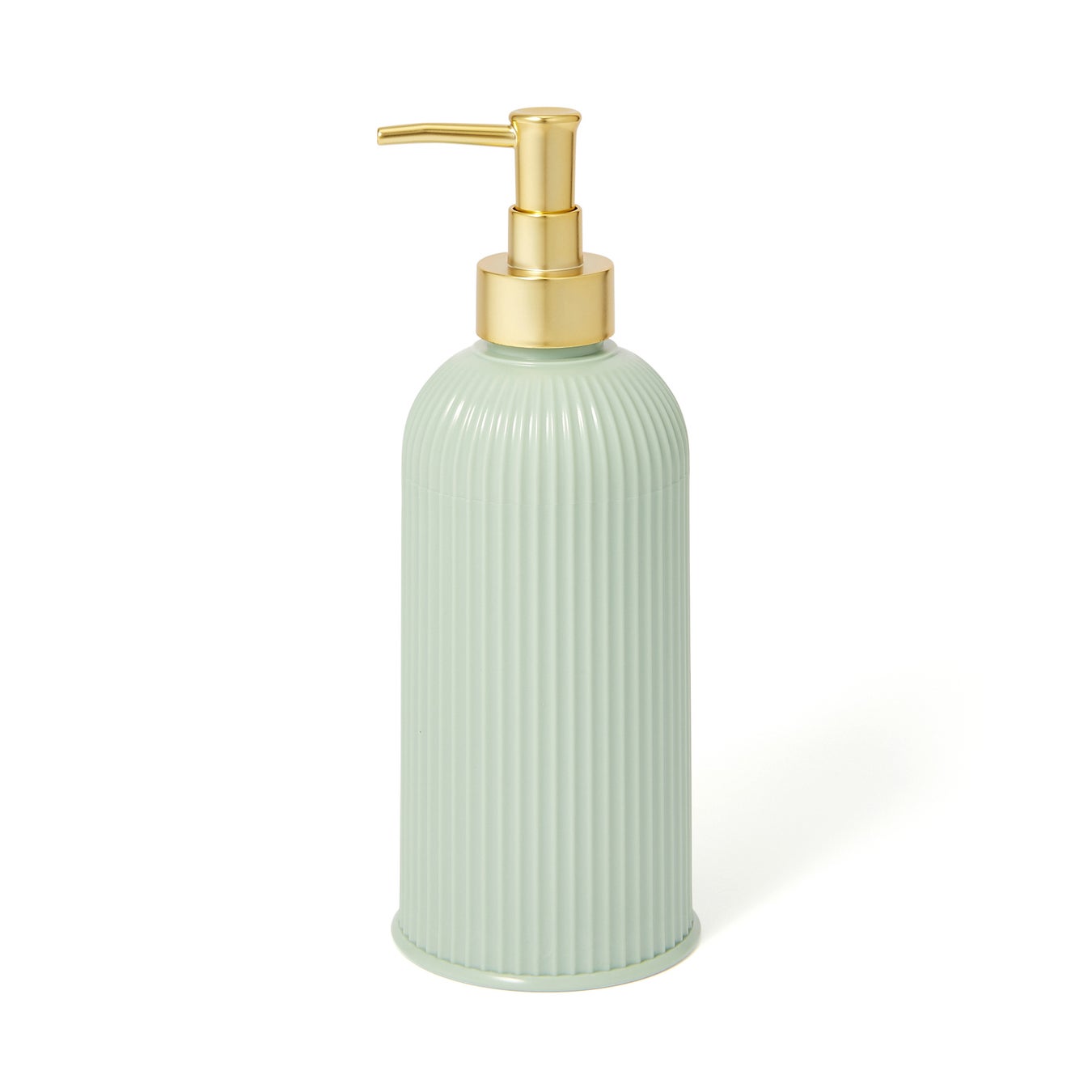 シンプルでナチュラルなテイストのディスペンサーです。淡いグリーンとゴールとの組み合わせが大人っぽい上品な洗面アイテムです。