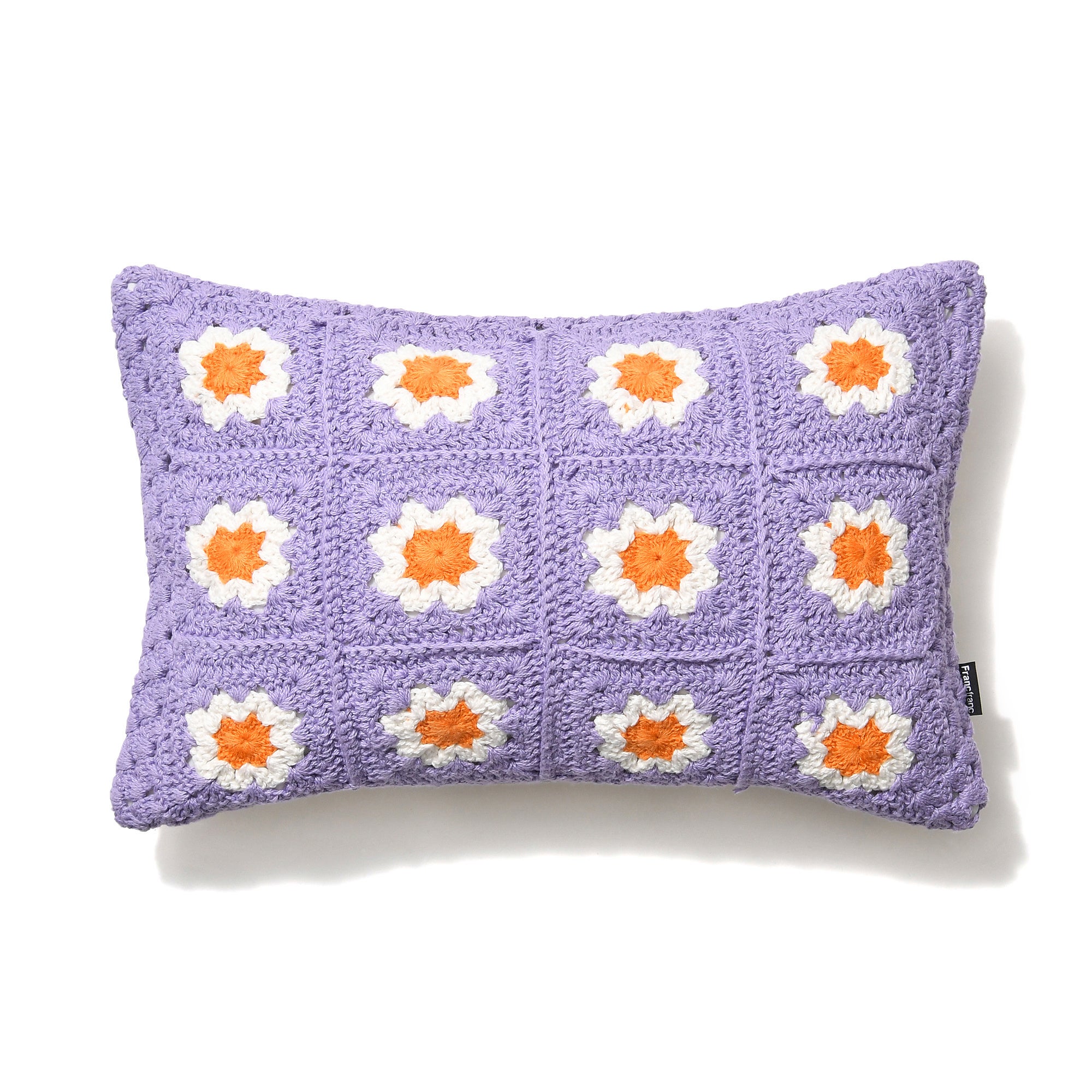 トレンドであるフラワーモチーフのクロシェ編みクッションカバーです。柔らかなパープルカラーが春夏のインテリアシーンにぴったりです。