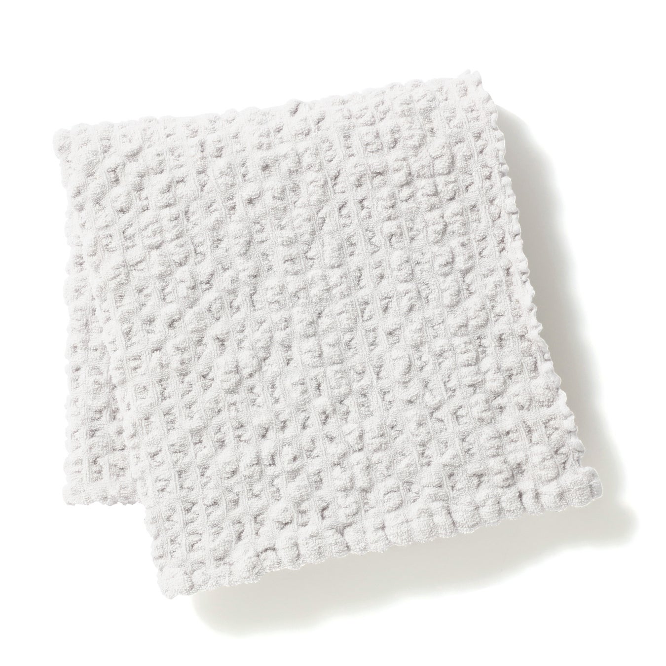 ポコポコとしたかわいい見た目が特徴的な吸水性の高いタオルです。伸縮性も高く、バスタオルは体に、フェイスタオルは頭にぴったりとフィットします。