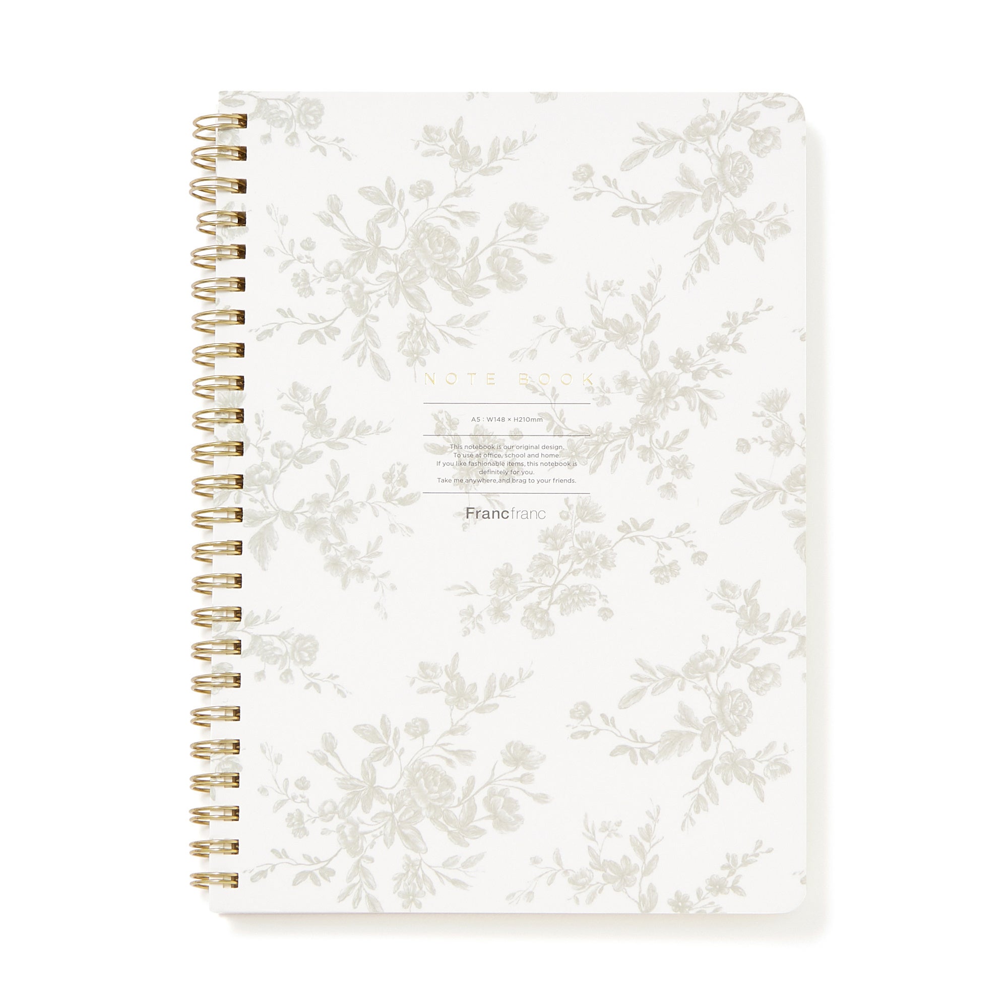繊細なボタニカル柄が大人かわいいリングノートです。仕事や学校ではもちろん、アイデアノート、日記帳としても使える便利なA5サイズです。