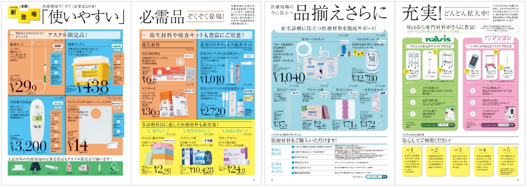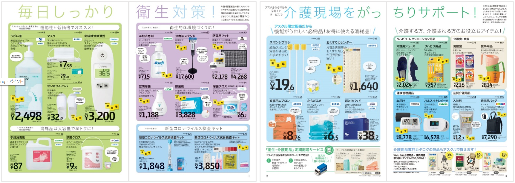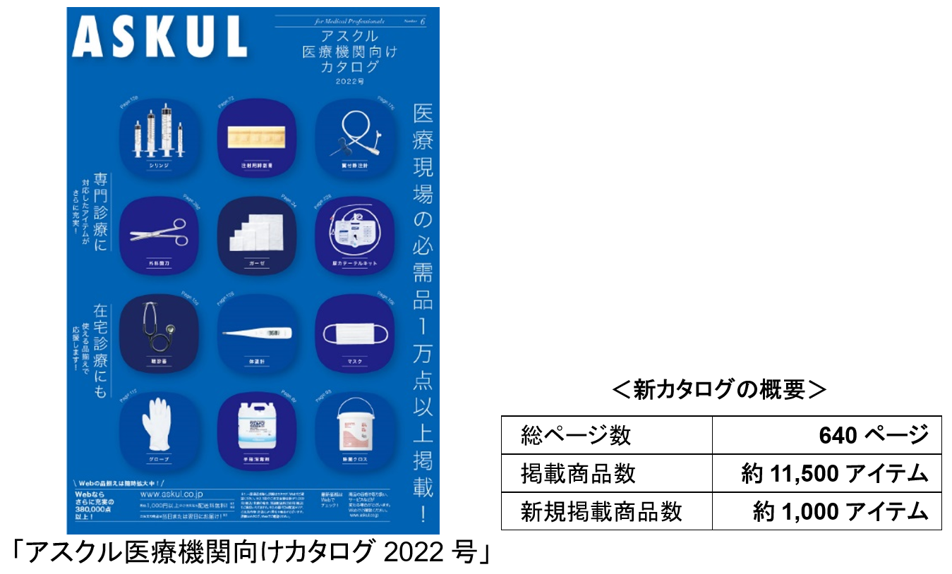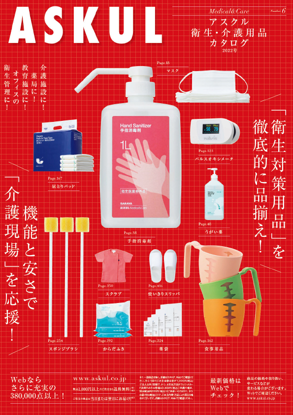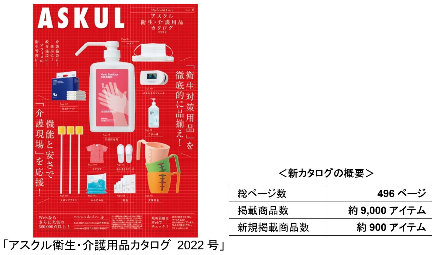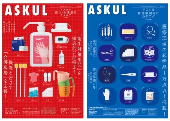 アスクル株式会社 (本社:東京都江東区、代表取締役社長:吉岡晃、以下「アスクル」)は本日、介護施設や薬局のほかオフィスや教育機関でもご利用いただける「アスクル衛生・介護用品カタログ2022号」(以下「衛生・介護用品カタログ」)と、医療機関のお客様の定番品をまとめてご購入いただける「アスクル医療機関向けカタログ2022号」(以下「医療機関向けカタログ」)を発刊します。
