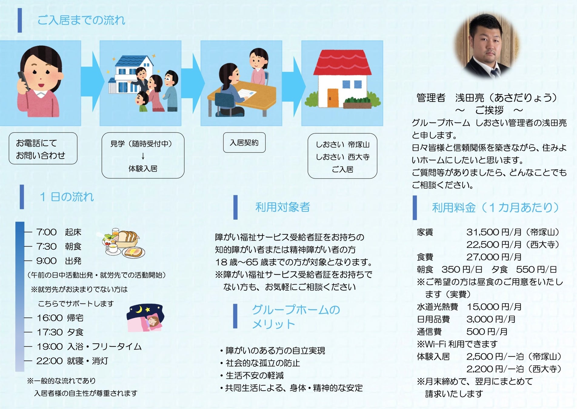 「グループホームしおさい」は、特定非営利活動法人光進会が運営する奈良県の障害者グループホームです。
