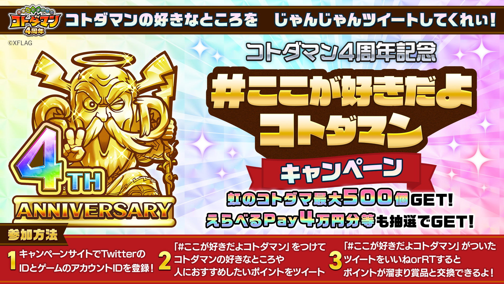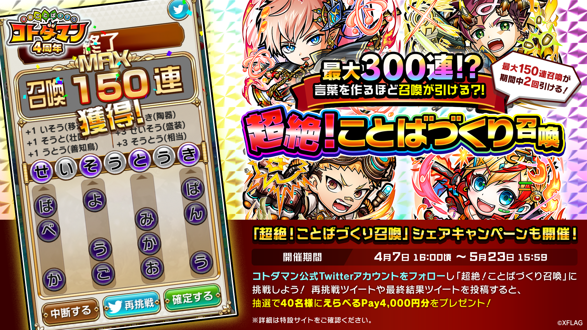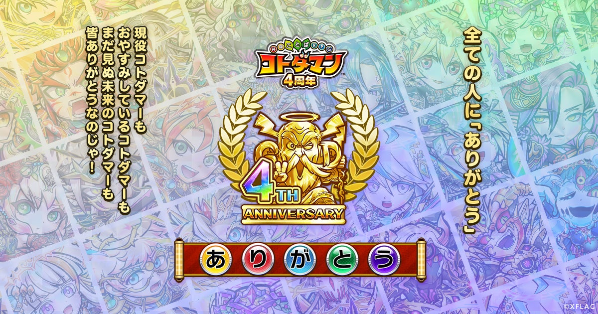 コトダマン4周年記念イベント「コトダマン4周年!全ての人にありがとう!」特設サイト:https://xfl.ag/3uPUp3P