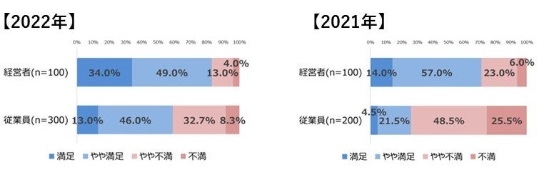 人事評価制度への満足度(2022年と2021年比較)