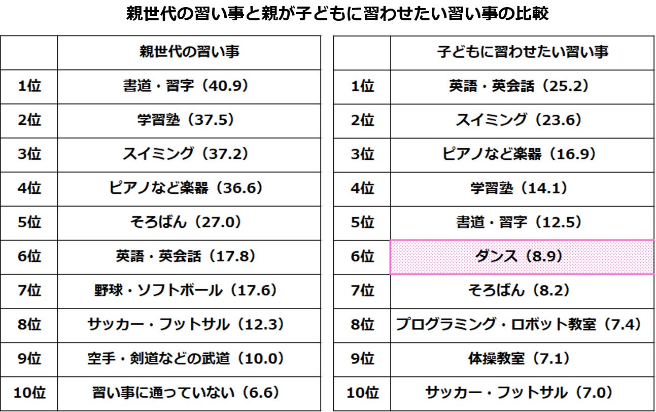 【小学生の習い事に関する意識調査】子どもに習わせたい習い事、「ダンス」が躍進。チャレンジ精神やコミュニケーション能力の向上に期待