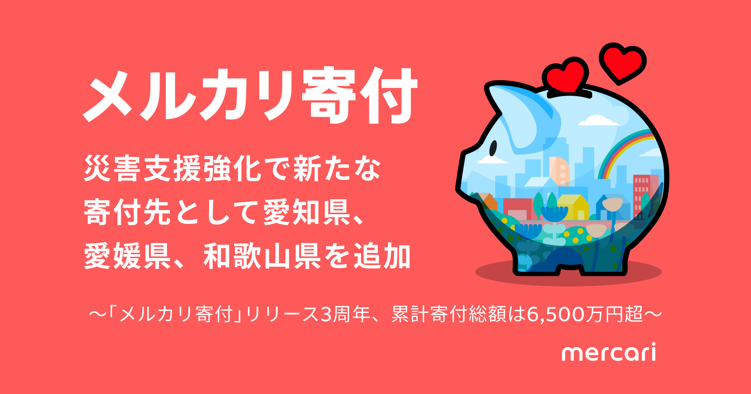 メルカリ、災害支援強化で9月1日より「メルカリ寄付」に新たな寄付先として愛知県、愛媛県、和歌山県を追加