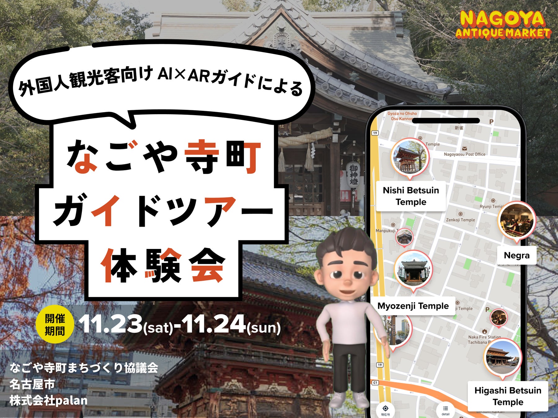 名古屋市「NAGOYA CITY LAB」にpalanが採択、なごや寺町エリアでAR・AIを活用したガイドツアー・ARコンテンツ実証実験を開始