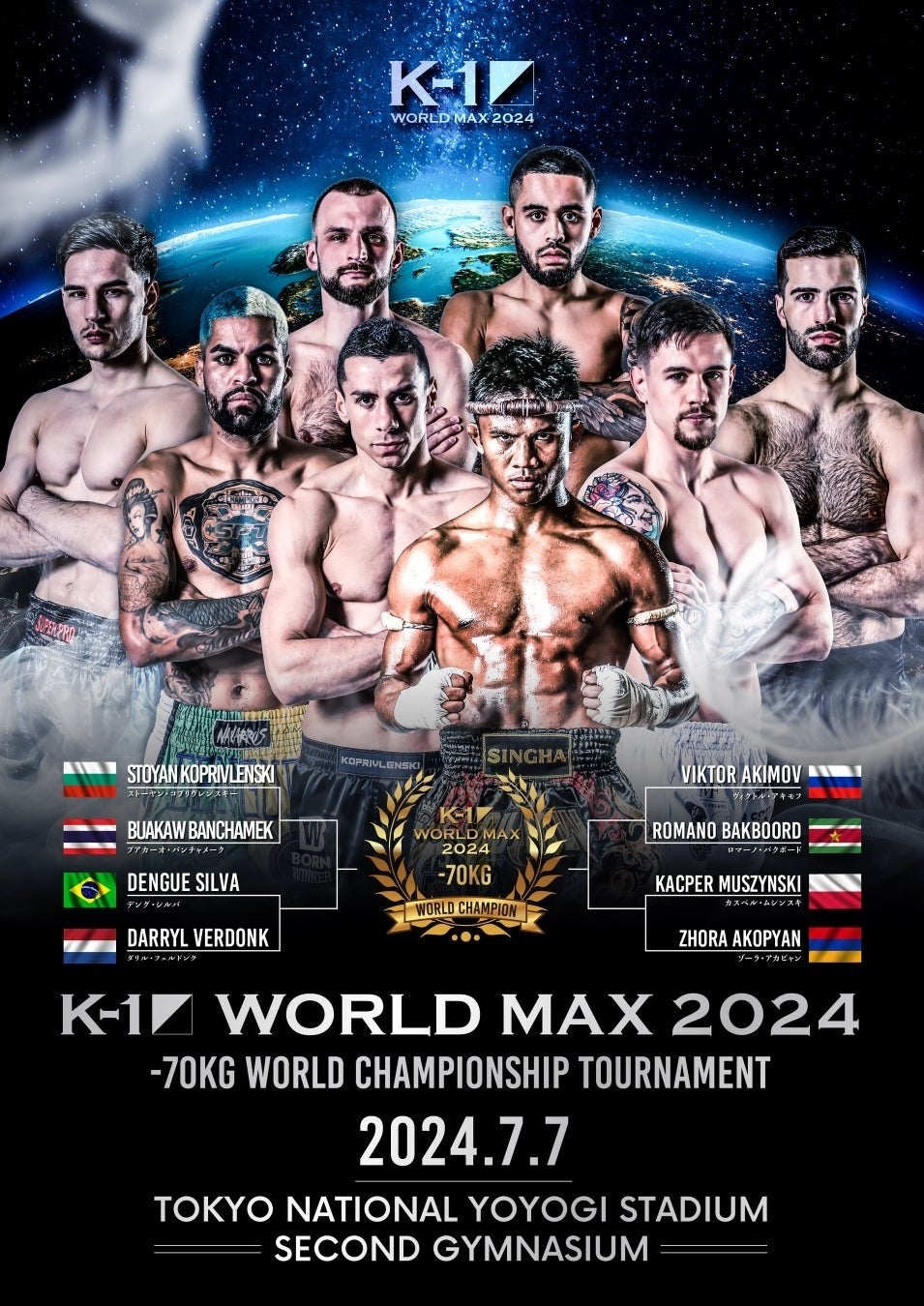 7月7日(日)開催の今大会の見どころは「K-1 WORLD MAX」をメインタイトルに、今年3月実施の“人類最激戦区”-70kgの世界最強決定トーナメントの勝者として、世界各国から集結した強豪選手たちがこの度の“決勝”トーナメントで激突。ワイルドカードで発表されたK-1MAXの“鉄人”でありレジェンドであるブアカーオ・バンチャメーク(タイ)にも注目。