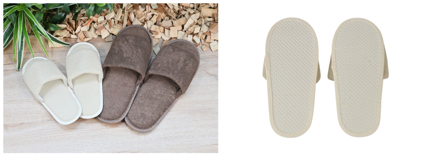 サイズが22cmと小学生程度のお子様にぴったり合うように設計したパイル地スリッパ。ソール部分には麦わらを再利用しており、環境に優しい製品です。活発で体温がこもりやすいお子様にも心地よく履いていただけるよう、ふわふわな肌触りが特徴のパイル地と前開き仕様を採用しました。