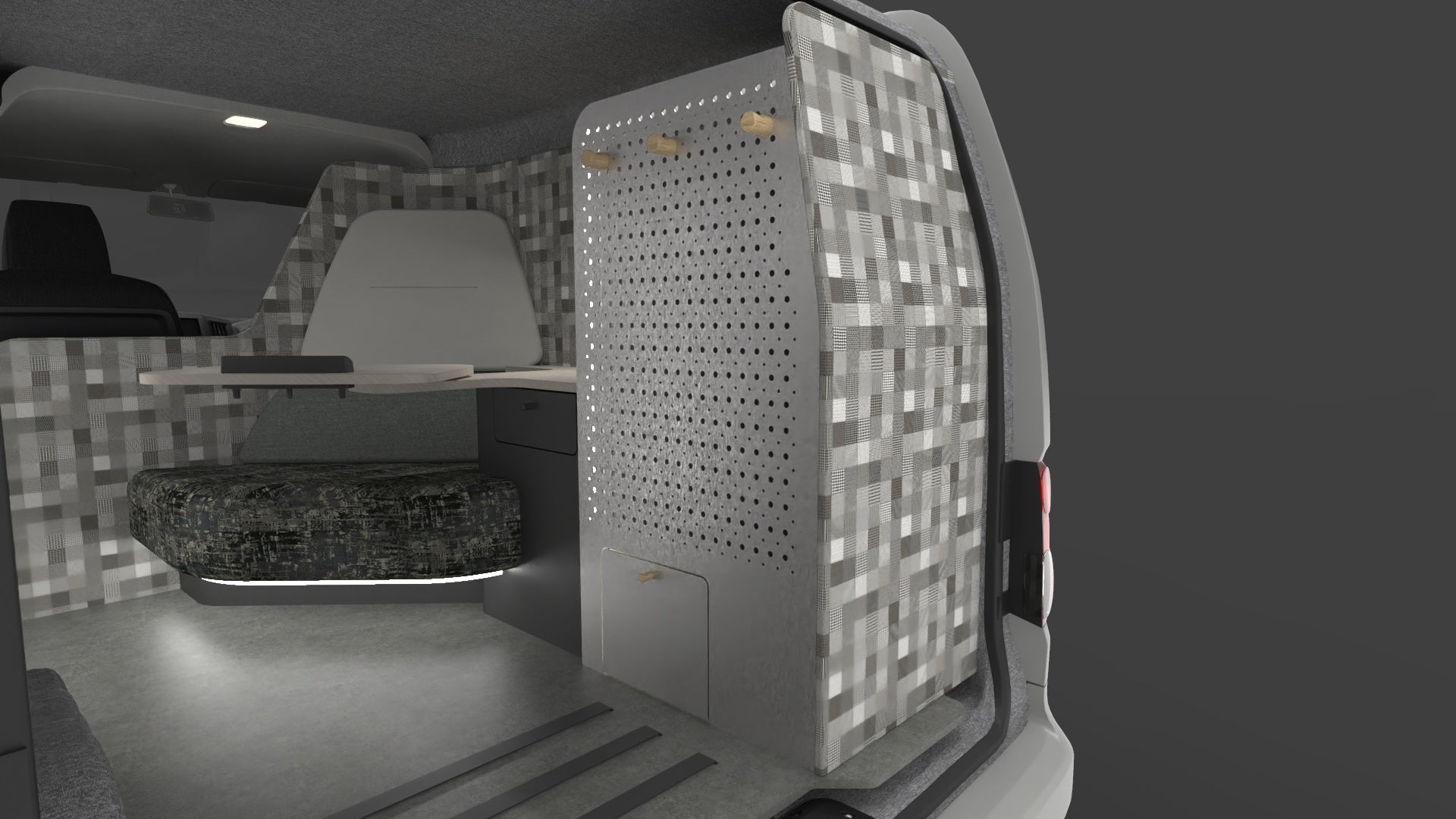 車内の照明はオンラインミーティングに適した環境が実現できる間接照明を搭載しています。デスク天板は着席しやすい可動式で、ノートパソコンの使用に配慮されたサイズであり、スマートフォンを差し込むことでハンズフリーで、ビデオ通話ができるスリットが設けられています。