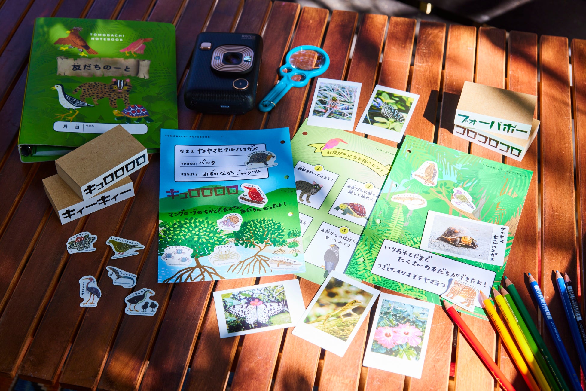 友だちになった生き物の特徴や、交流を通じて気づいたことを「友だちノート」にまとめます。貸し出し用のインスタントカメラで、友だちになった生き物の写真を撮り、プリントアウト。撮影時は、相手が嫌がることはしないことがルールです。鳴き声や、好きな食べ物など、生き物に関するシールやスタンプで、友だちの特徴を思い出しながら、ノートのデコレーションを楽しめます。家に帰った後も、身近にいる生き物に興味を持ち、ノートにまとめることで、友だちの輪を広げることができます。