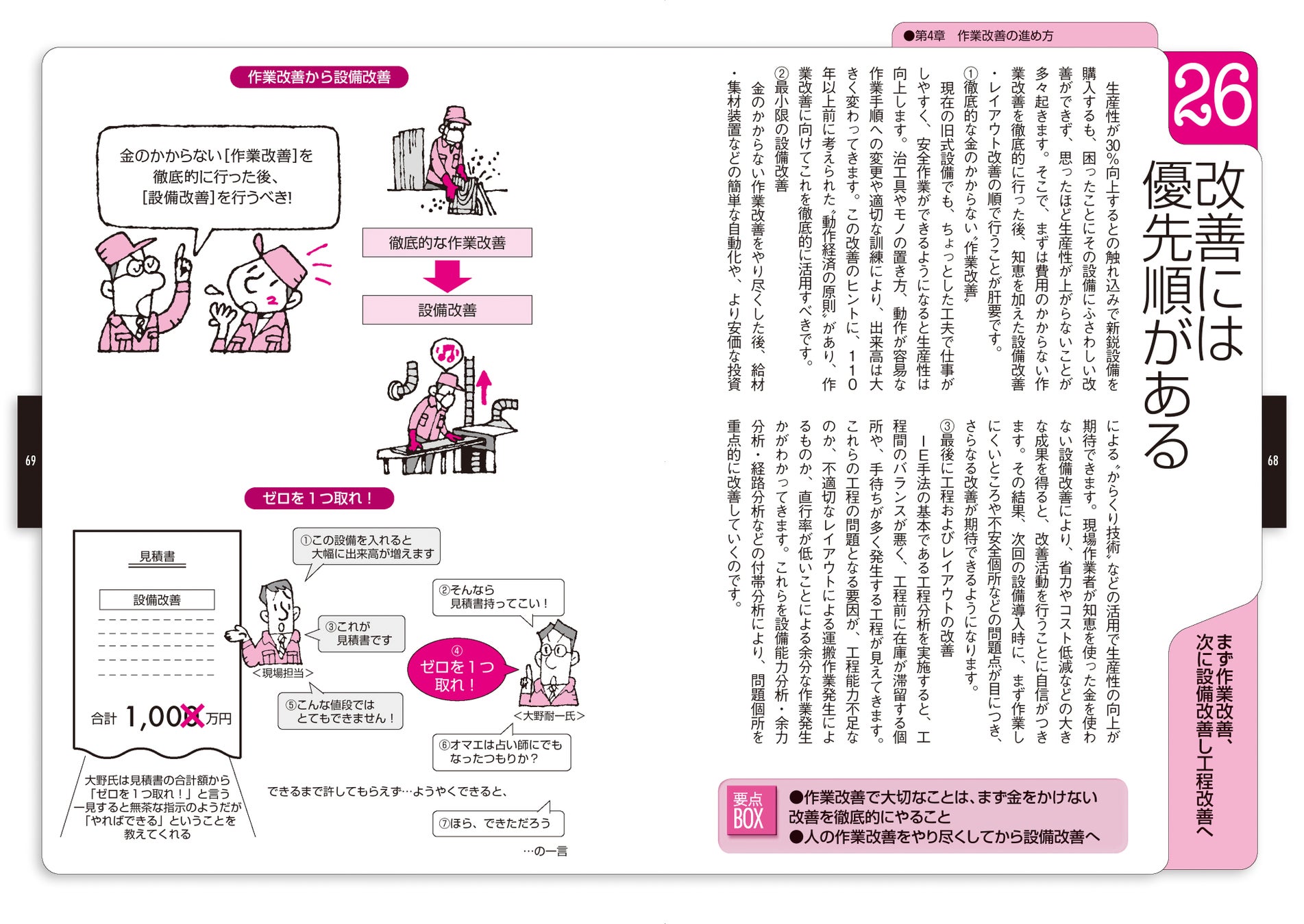 現地現物でモノを見て、金を使わず知恵を使った改善により成果を上げるプロセスのすべてを、他の産業分野の人でも平易に実践できるよう手ほどきしています。長年好評を博す「トコトンやさしいトヨタ生産方式の本」の姉妹編として、モノづくり現場の変容や働く人、組織、ツールの進化に即し20年ぶりに内容を刷新しました。