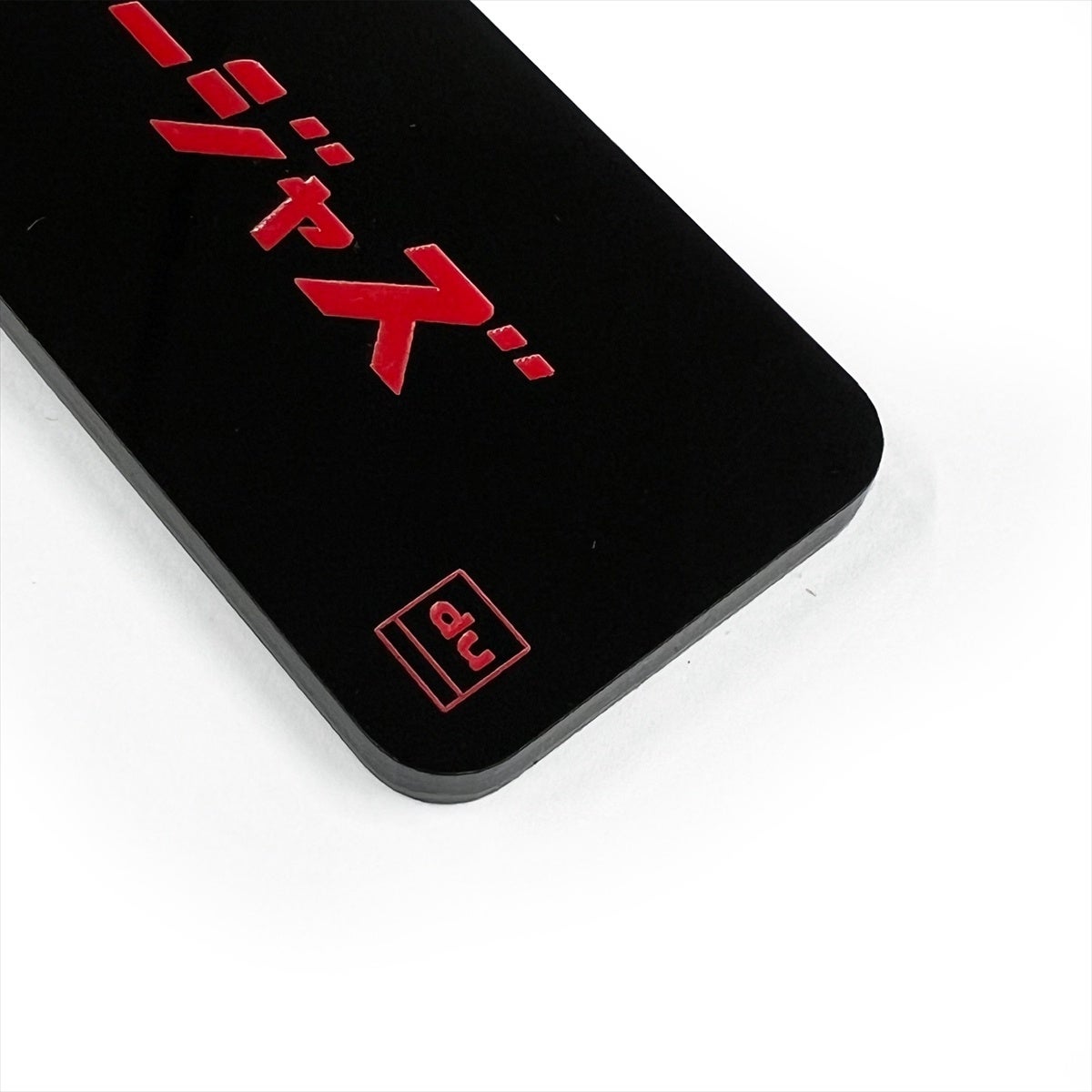 黒地に赤でジャンル名を刻んだミニマルなデザイン。