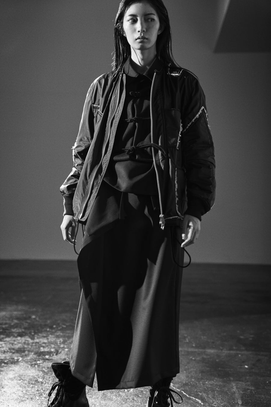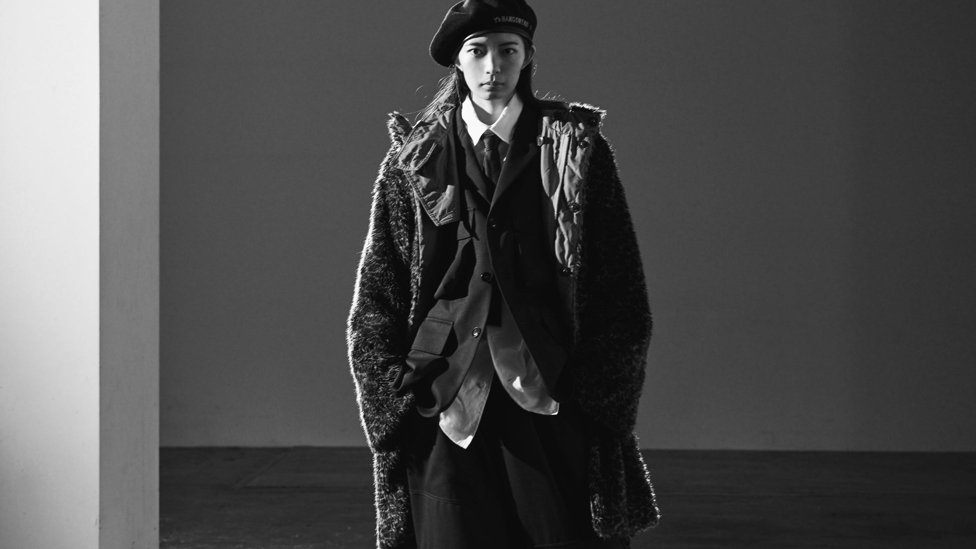 最新コレクションを飾るポートレート──Y's BANG ON!の最新コレクションを着たモデル・美緒。新鮮な感性と、純粋な精神が、最新コレクションをより強く、印象的に私たちへ届けます。