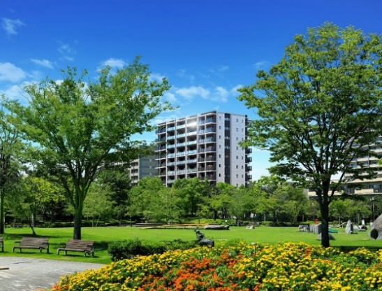 郡山市の市街地中心部に位置する「21世紀記念公園 麓山の杜」は「人々を誘い、人々が集い、にぎわいのある活気に満ちた21世紀に向けての新しい街づくりのため、その先駆けとなるとともに、市民に親しまれ、市民が誇れるような公園づくり」をテーマに、「豊かな花・緑・水」の文化・交流拠点としての役割を果たす、約2.8haを誇る公園です。災害時の備蓄倉庫や耐震性貯水槽を備えることで、防災公園としての役割も果たす※1「21世紀記念公園 麓山の杜」を目前に、バルコニーからは、うつろう四季の風景を堪能できます。