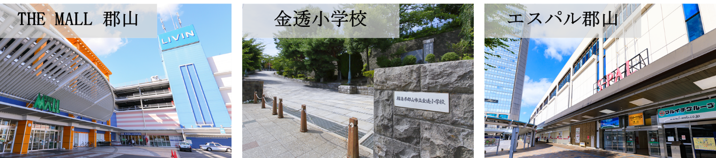 24時間営業のスーパーが入る「THE MALL郡山」をはじめ、金透小学校や郡山第二中学校も至近。暮らしやすさが整う閑静な住宅街に位置しています。