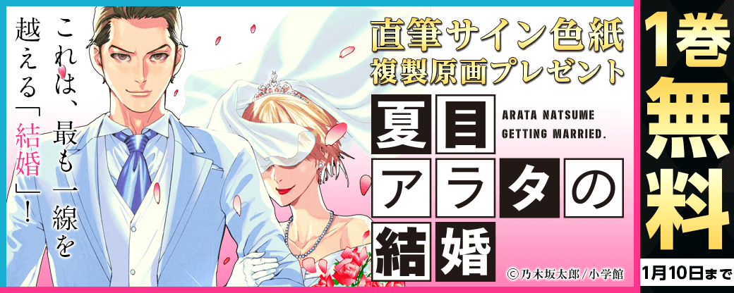 大人気サスペンス作品「夏目アラタの結婚」の作者・乃木坂太郎先生の直筆サイン色紙や複製原画が当たるプレゼントキャンペーンを開催中!Twitterで『まんが王国』公式アカウントをフォロー&該当ツイートをリツイートで応募完了!なお、ご参加には『まんが王国』無料会員登録が必要です。