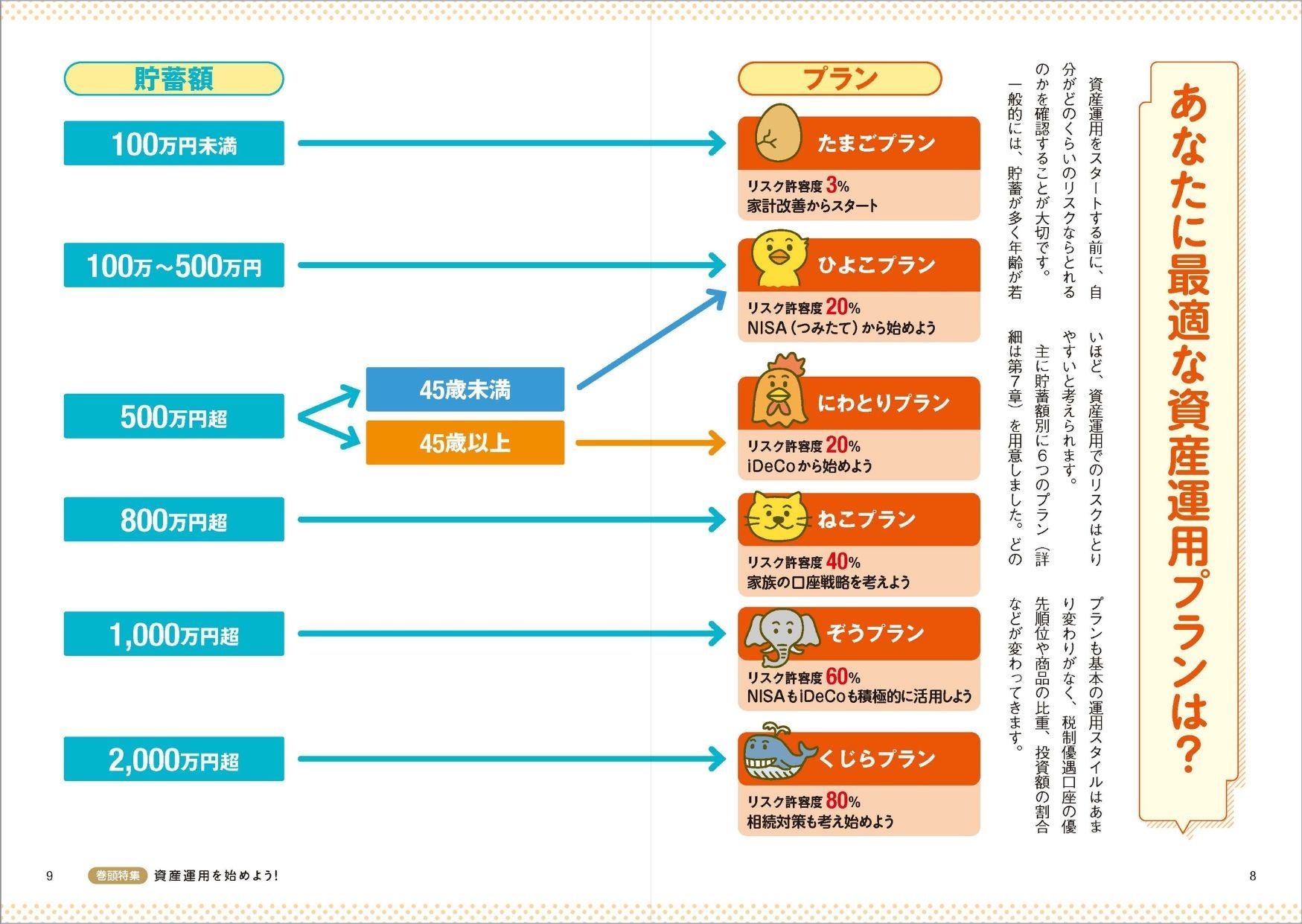 本書では、多数のメディアに出演する人気ファイナンシャルプランナーが、資産運用をこれから始める人に向けて、自身にぴったりの資産運用プランを伝授します。巻頭のフローチャートで現在の貯蓄額に応じた6つの資産運用プランをざっくり把握してから、本書を読み進めていけば、最適な資産運用方法の組み合わせが見つかります。