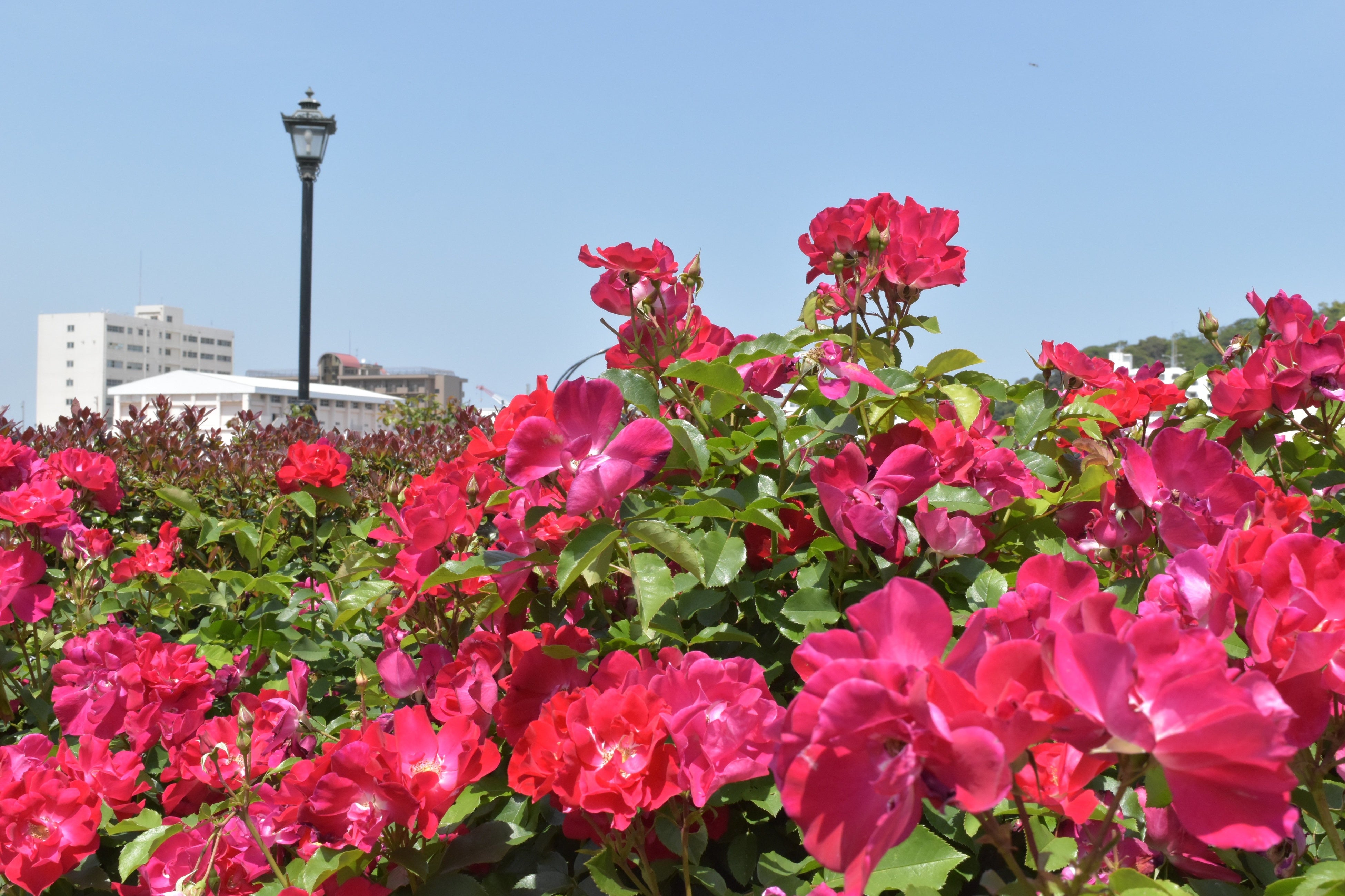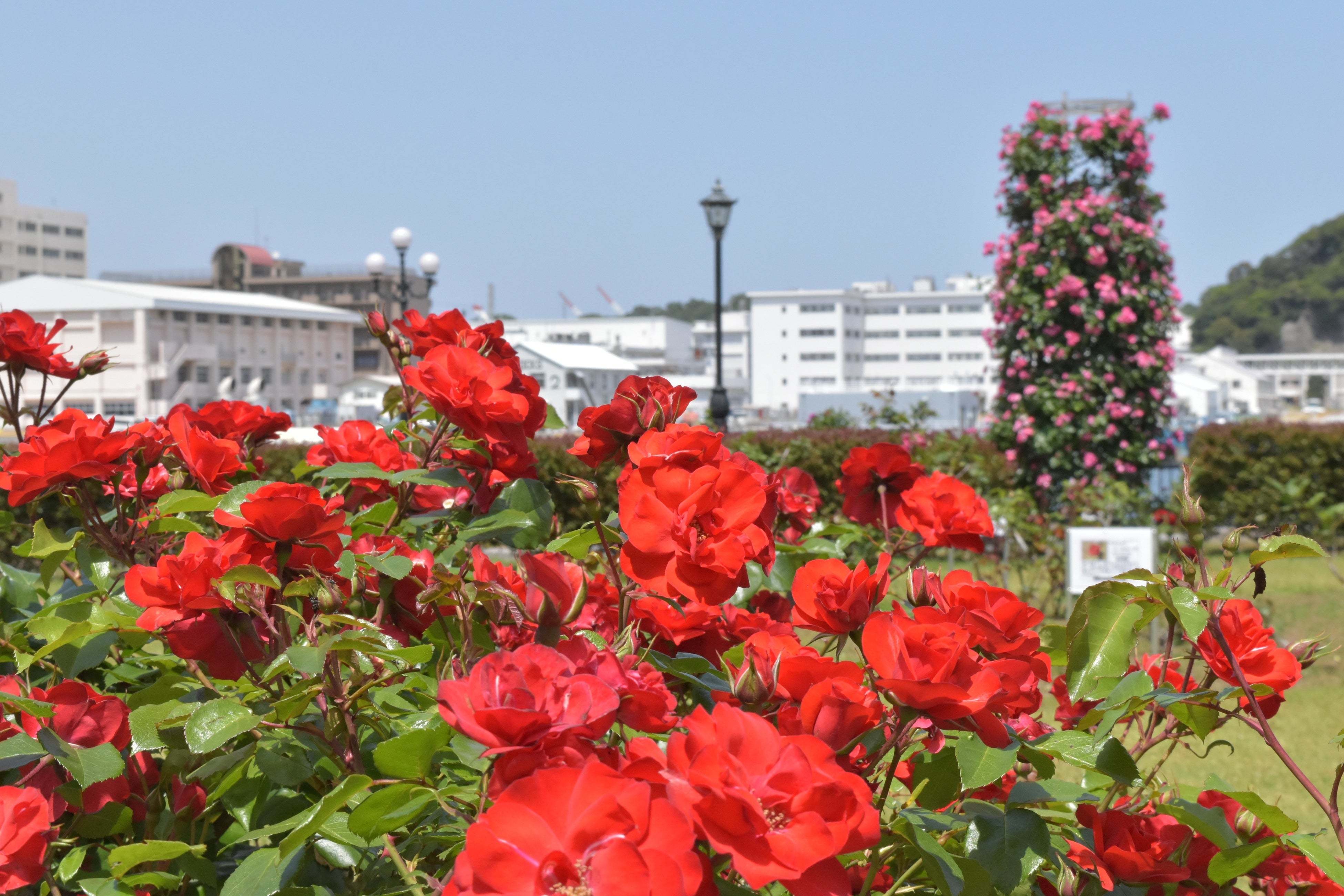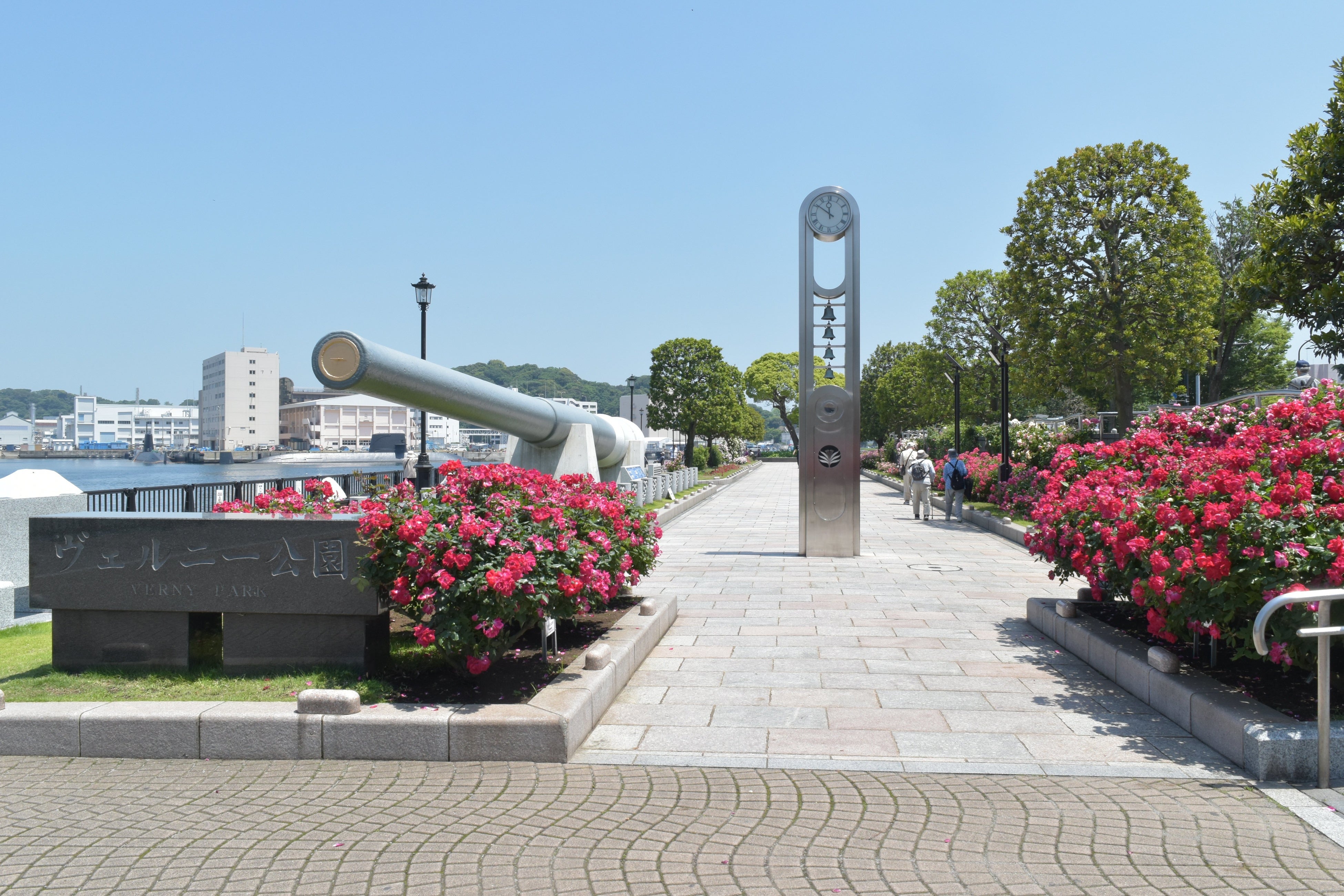 横須賀市ヴェルニー公園は、横須賀港に面し、約160種類1,700株のバラを楽しむことができるフランス庭園様式を持つ公園です。毎年5月下旬に「春バラ」が見頃を迎え、入園無料でお楽しみいただけます。